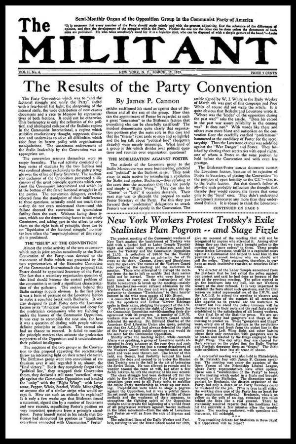 话虽如此,共产党从领导人到普通成员确实对他们的托洛茨基主义对手施加了很多暴行。托洛茨基主义者坚持开放的辩论,讨论革命运动中不同派别的观点。他们希望就共产国际所遵循的政策进行对话,他们要求,正如所有革命者所应该做的那样,当政策导致失败甚至更糟时,那么这些政策应该受到批判性的审视。这是1928年坎农、马克斯·沙赫特曼(Max Shachtman)和马丁·阿伯恩(Martin Abern)最初被美国党开除出党的基础,也是我书中的背景。当这些持不同意见的共产主义者将追随者组织成美国共产主义者同盟,反对派(CLA),并出版了一份报纸《战士报》(The Militant),试图向美国的革命者阐明托洛茨基对共产国际20世纪20年代后期政策的批评,斯大林在这些政策中策划了一场从倡导世界革命到保护和巩固苏联政权的转变,建设“一国社会主义”而不是扩大国际革命,坎农及其盟友所希望的讨论被关闭了。