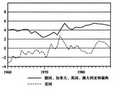 ![]() 表5:社会净工资占GNP的比例(%) 自从1995年以来,欧洲主要国家在“社会保障” 方面的支出基本固定不变,它随着失业率的变动而小幅上升或下降,并且在美国近来的大多数衰退中,支出也没有降到原先的衰退时那么低,尽管克林顿任期内实行了“福利改革”。安瓦尔·谢赫的一个分析计算了一些国家的“社会净工资”——工人从社会支出中所获得的部分减去他们所付的税,他发现,在20世纪80年代,德国、加拿大、澳大利亚和瑞典的社会净工资总和在整个GNP中所占的比例比60年代或70年代更高;美国的趋势也是如此。(见表5) 谢赫的分析也指出了非常重要的一点。“社会工资”的支出总是来自于对普通工资的课税。实际上,它相当于在工人阶级内部进行的工资再分配——在20世纪50年代和60年代的美国,当社会净工资是负数时,它等于是工人为国家提供了补助,而不是相反。在提到各国的差异时,他写道: “与美国不一样,其他经济合作与发展组织的国家的社会净工资率普遍是正的。德国和英国的比率最高,尽管它们平均只占GDP的5%和工资总额的 8%。在瑞典这个福利国家的典范中,在繁荣时期平均净工资也为零。”