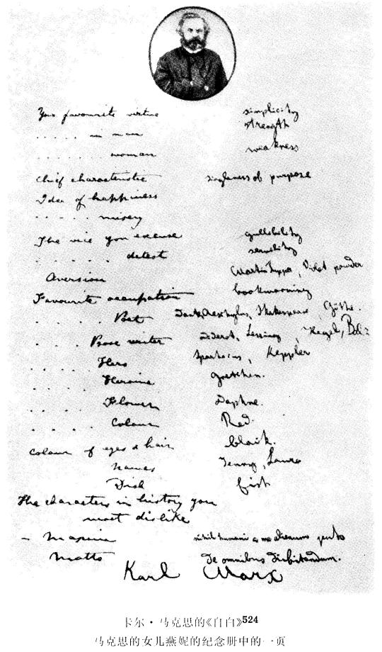 卡尔·马克思的《自白》,马克思的女儿燕妮的纪念册中的一页………………………………………………588—589