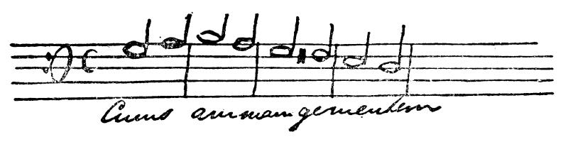 但愿你的牙已经拔了,或者,没有必要拔。——有关池塘的谜语很好,不过你自己可以猜出来。你知道,作曲可不容易,要考虑到许多方面的问题:和声的协调、对位法的正确运用,这一切都要求付出巨大的劳动。不过,我一定设法在最近再给你寄点东西去。目前我正忙于谱写新的赞美诗。有两个声部,男低音和女高音相互交替。请看: