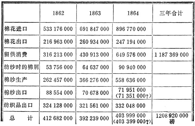 [28]马克思引用的材料摘自《内战时期棉花贸易状况》一文,该文以著者姓名的第一个字母“J·E”署名,发表在《经济学家》杂志1866年4月14日第1181号第447页上,这些材料以埃利森和海伍德公司的报告为依据。1868年12月9日和12日马克思给恩格斯的信中也引用了这些材料(见《马克思恩格斯全集》中文版第32卷第208—209、212、214—215页)。——第77页。