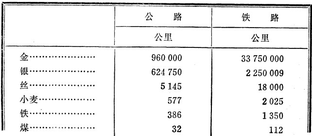玉米用公路运输170英里,便会完全丧失市场价值,而用铁路运输,只减少1/10的市场价值;同样,用公路运输小麦330里,就会完全丧失价值,而用铁路运输,市场价值只减少约1/10。