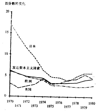 从70年代中期以来世界贸易的增长速度明显地减慢了。1973年到1981年间的年增长速度为3.5%,远远低于前10年年增长8.7%的速度。世界贸易在制造品这个竞争最激烈的领域中的年增长为5.1%,与此相比,繁荣时期是10.8%。由于市场扩大得较慢而过剩的生产力在增长,竞争加剧了。