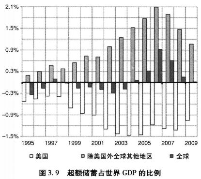 然而泰勒(2009:345—346)则反驳说,这一主张的关键之处——即存在着全球储蓄过剩这一点是虚构的。尽管在世界其他地方储蓄超出了生产性资本的投资,但在美国情况却相反,并且其数量是大致相当的。由于这两个不平衡相互抵消,因此,根本不存在一个会造成利率下降和抵押贷款剧增的全球范围的储蓄过剩。