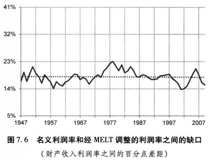 图7.6 名义利润率和经MELT调整的利润率之间的缺口