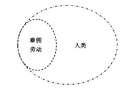相应地,将超越资本的动力认定为资本和雇佣劳动之间的对立是不充分的。然而这种认为资本的自我毁灭暗含于资本的成功之中的观点的确是个真正的进步,但它[就像黑格尔的“糟糕的无限”(bad infinity)一样]是不充分的,因为这种雇佣劳动并不能超越资本而是内在地受到资本的束缚(Hegel,1961:I,pp.150~163)[viii]。因此,我们推进到人类的观念中(如图11.1所描述),这个观念中包含作为雇佣劳动者的人和作为非雇佣劳动者的人,既包括了不以人的意志为转移的存在也包括了要超越的应然。