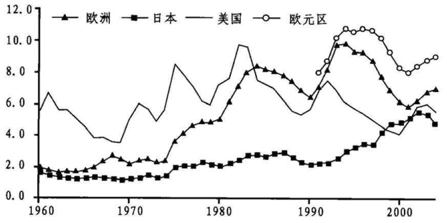 图2.1 失业率(1960~2004)