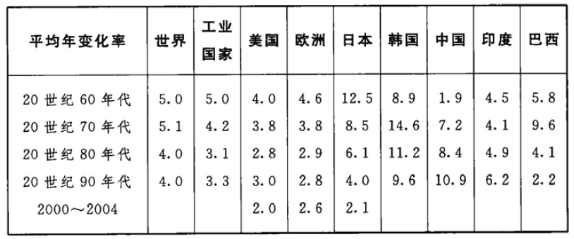 表4.2 资本积累:固定股本增长率(1960~2004)