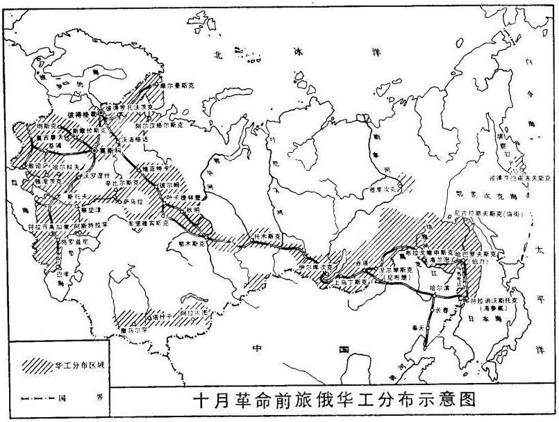 十月革命前旅俄华工分布示意图