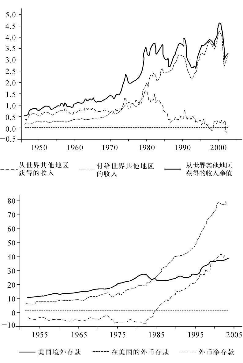 美国将会在一夜之间变成像2001年的阿根廷那样——这是不可思议的想法,但并非不可能。然而,其结果将会是灾难性的,不仅在美国国内如此,对全球资本主义来说也是如此。由于差不多每一个属于各地资产阶级及其全球管理者的人都充分意识到了这个事实,世界上其余地区目前便愿意(某些情况下是不情愿地)继续支持美国经济,用足够的贷款维持美国的挥霍无度。但是,流入美国的私人资本大幅减少(除了用于在美元贬值时收购廉价资产的资本),同样,世界上的主要银行家——尤其是在日本和中国——如今越来越多地拥有美国公司。要其他国家停止对美国的帮助,对它们自己的经济而言将是毁灭性打击,因为美国仍然是它们出口产品的主要市场。但是,这一体系的进展有一个限度。已经有将近三分之一的华尔街证券资产和将近一半的美国国债为外国人所有,而如今流向外国所有者的股息和利息等同于(如果不是超过的话)美国企业和金融机构从海外攫取的贡金(图7.1)。美国借得越多,其利益平衡就越呈负面,而美国目前向海外借贷速率接近每天二十亿美元。此外,如果美国利率上升(在某个时刻它们必然会上升),那么1979年沃尔克利率上调后墨西哥所发生的情况,就开始变成一个现实的问题。美国将很快付出比引进的资本多得多的资本,偿付其在世界上其他地方的债务。[14]这种将财富抽离美国的行为将不会受到国内欢迎。由债务资助的消费主义不断增加,已经成为自1945年以来维持美国社会和平的基础,但这种消费主义将不得不停止。