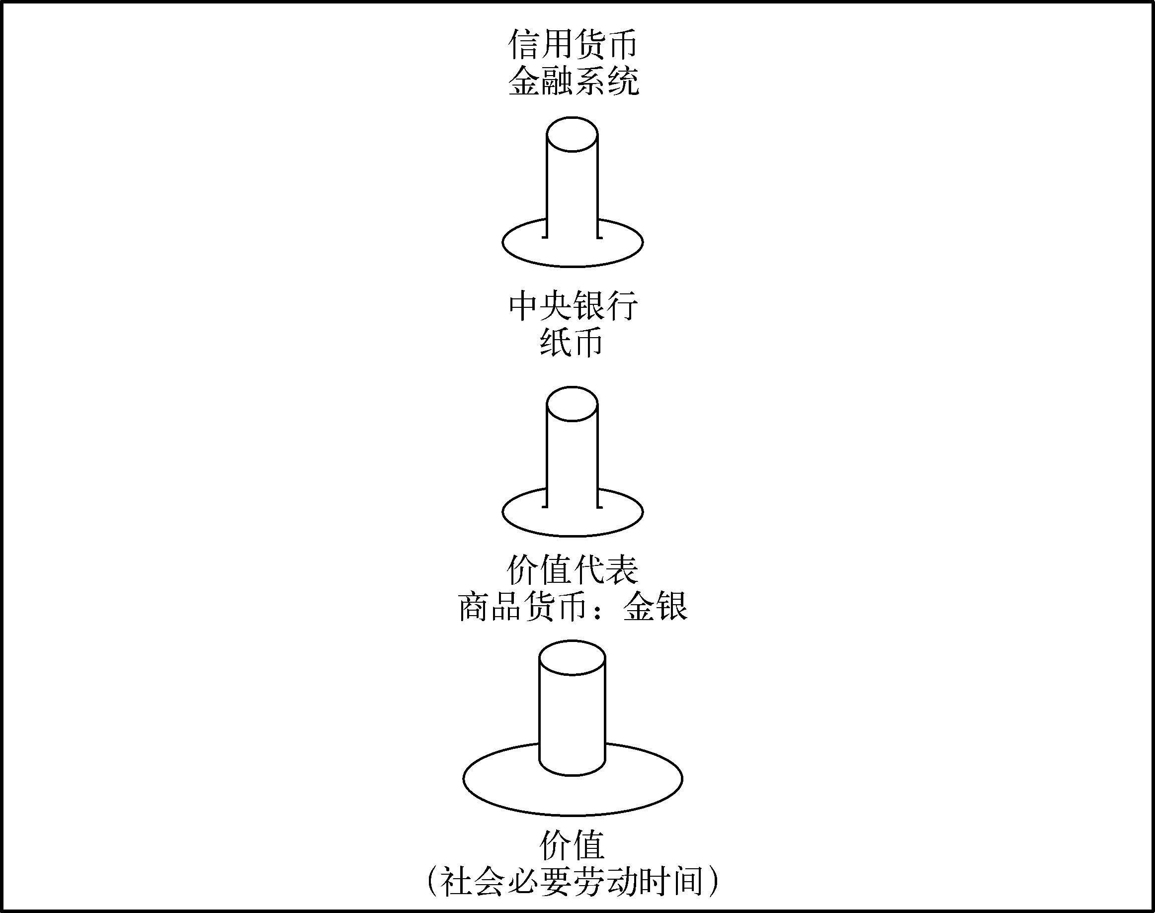 马克思在前面已经更加充分地论述了这些关系:“货币作为独立的价值形式同商品相对立,或者说,交换价值必须在货币上取得独立形式,这是资本主义生产的基础。”[8]作为一般等价物的商品货币就是这种独立形式。那么当信用货币和信用业务取代了商品货币之后会发生什么呢?第一,“在信用收缩或完全停止的紧迫时期,货币会突然作为惟一的支付手段和真正的价值存在,绝对地同商品相对立。因此,商品会全面跌价,并且难于甚至不可能转化为货币,就是说,难于甚至不可能转化为它们自己的纯粹幻想的形式”。这里确切体现了拜物教理论。第二,“信用货币本身只有在它的名义价值额上绝对代表现实货币时,才是货币”。当金流向国外时,信用兑换成货币的可能性,