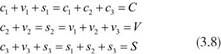 ![]() 〔注:图中公式3.8第二行第一个 = 应为 +。英文版即有此误——中文马克思主义文库〕 在这里,不变资本的产出完全等于各个产业使用的不变资本;工资商品的产出正好足以养活三个部类中的雇佣工人,奢侈品的产出正好等于生产的剩余价值的总量。同米尔普福特一样,博特凯维茨用p表示平均利润率。另外,x, y和z分别表示三个部类中生产价格和价值的比率;这和米尔普福特的x1....xn相对应。马克思的转形问题解决方法要求:
