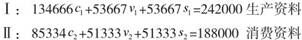 每一部类的资本有机构都为5(第Ⅱ部类只是接近),剥削率为100%,共同的利润率为16.7%。同样,第Ⅰ部类的资本家把剩余价值的一半用于积累,第Ⅱ部类把差不多三分之二(285单位中的184单位)的剩余价值用于积累。卢森堡和马克思不同之处在于,卢森堡假定积累的部分中用于不变资本和可变资本的比例为6:1,而不是马克思假定的5:1。根据以上解释中所表达的精神,我们可以得到(虽然卢森堡没有这样做):
