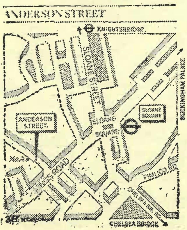 安德森街,SW3(伦敦地图上的位置,下同——译者)。地铁:乘地区线或环行线,到斯洛恩广场车站(SLANE SQUARE)下车;公共汽车:乘11、19、22、137路均能到达。