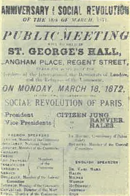 纪念巴黎公社一周年的公告上面列明马克思是发言人之一