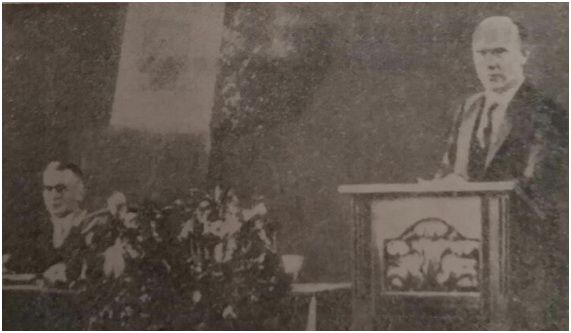 1927年在柏林举行的马克思逝世40周年纪念会中。右立者为台尔曼,左坐者为皮克。